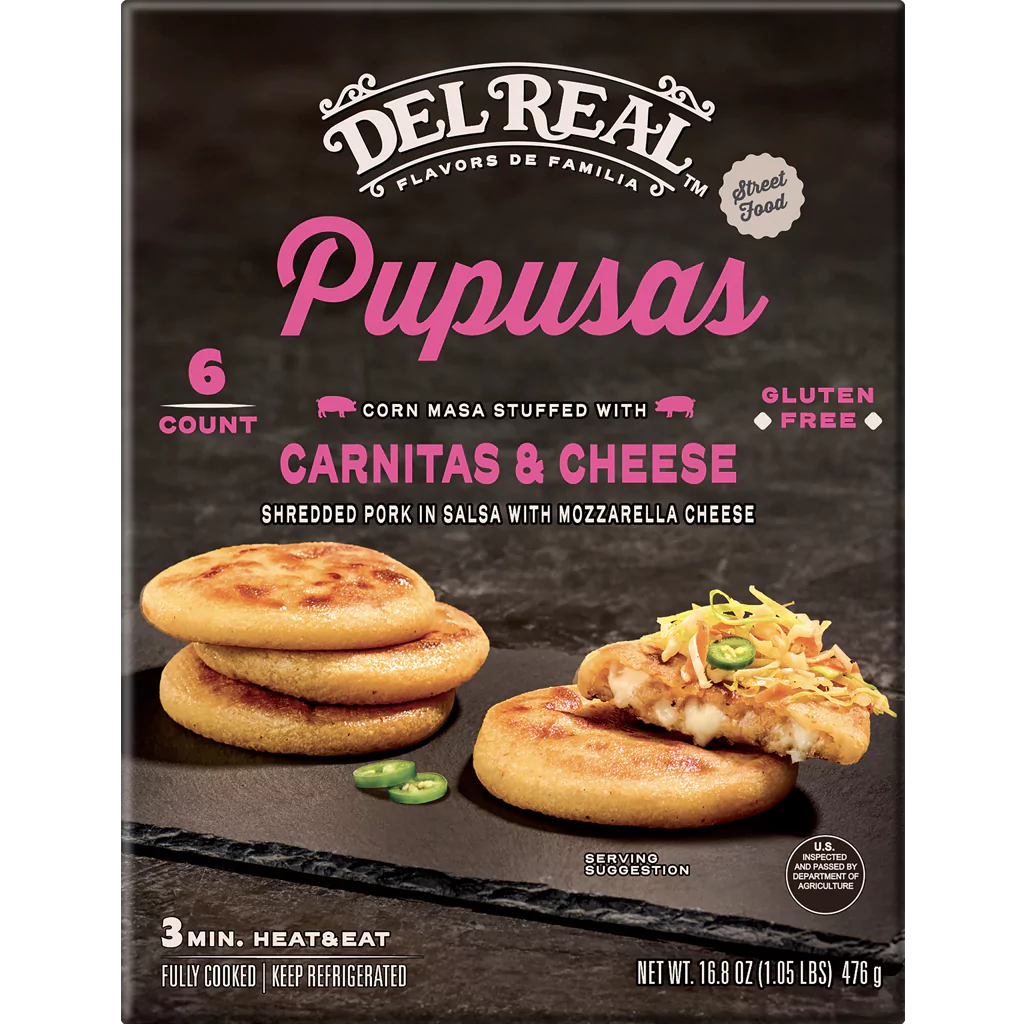 Del Real Foods Carnitas & Cheese Pupusas are filled with slow-cooked carnitas, savory salsa, and cheesy mozzarella. Perfect for any occasion, just heat and serve! Try pairing these Pupusas with curtido, salsa, or guacamole for a snack or appetizer that everyone will love. Ready in as little as 7 minutes on the stove top, enjoy real cuisine without having to prepare meals from scratch.